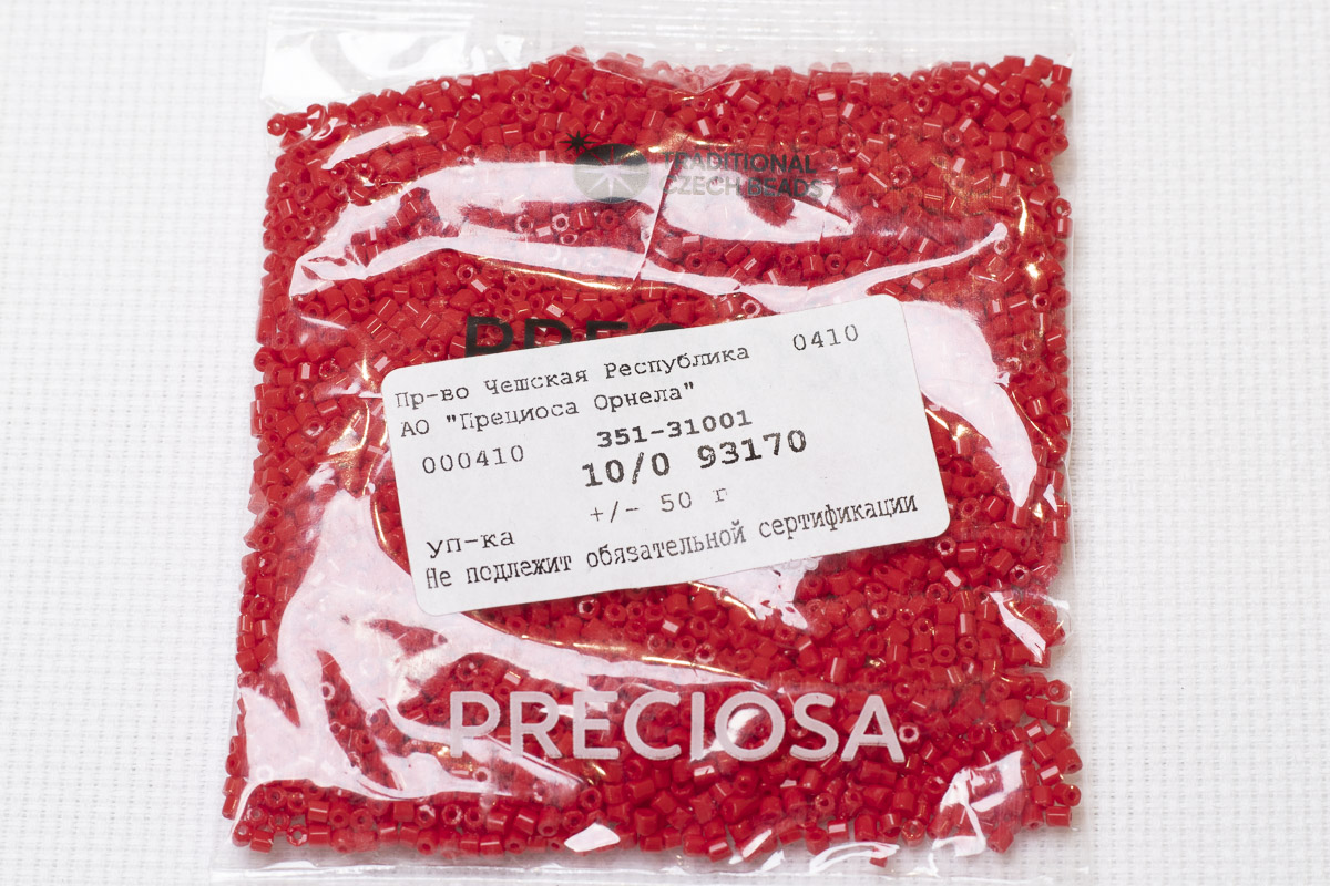 Бисер Чехия рубка 10/0 50г 93170 непрозрачный алый