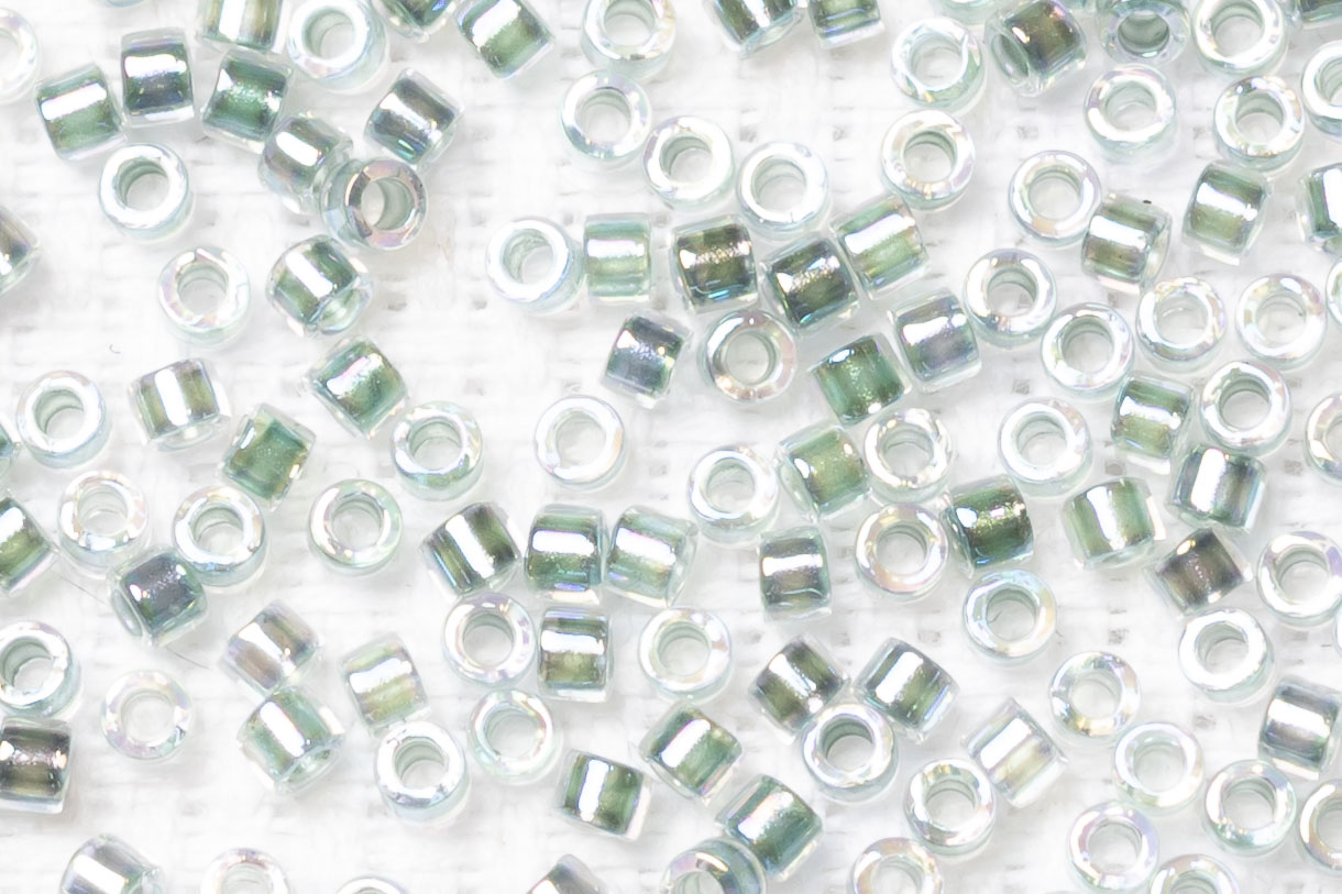 Бисер Япония MIYUKI Delica цилиндрический 11/0 5г DB-0084 светло-морская пена радужный с цветной линией кристалл