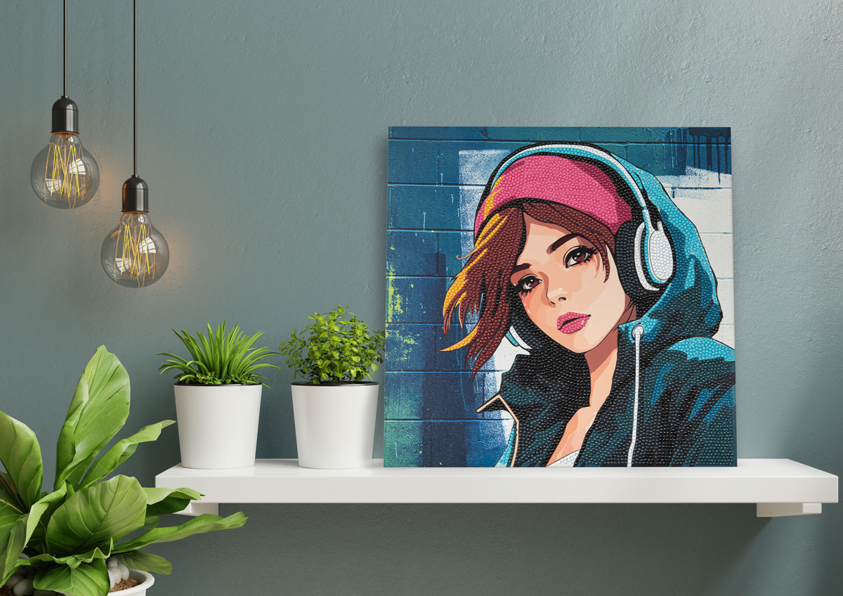 Кристальная ( алмазная) мозаика " ФРЕЯ" ALBP- 258 постер " Девушка в наушниках" 30 х 30 см